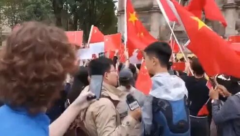 他们高举五星红旗,齐唱国歌、《我和我的祖国》等爱国歌曲,把妄图乱港分子的集会变成了一场爱国主义“全球大联欢”。